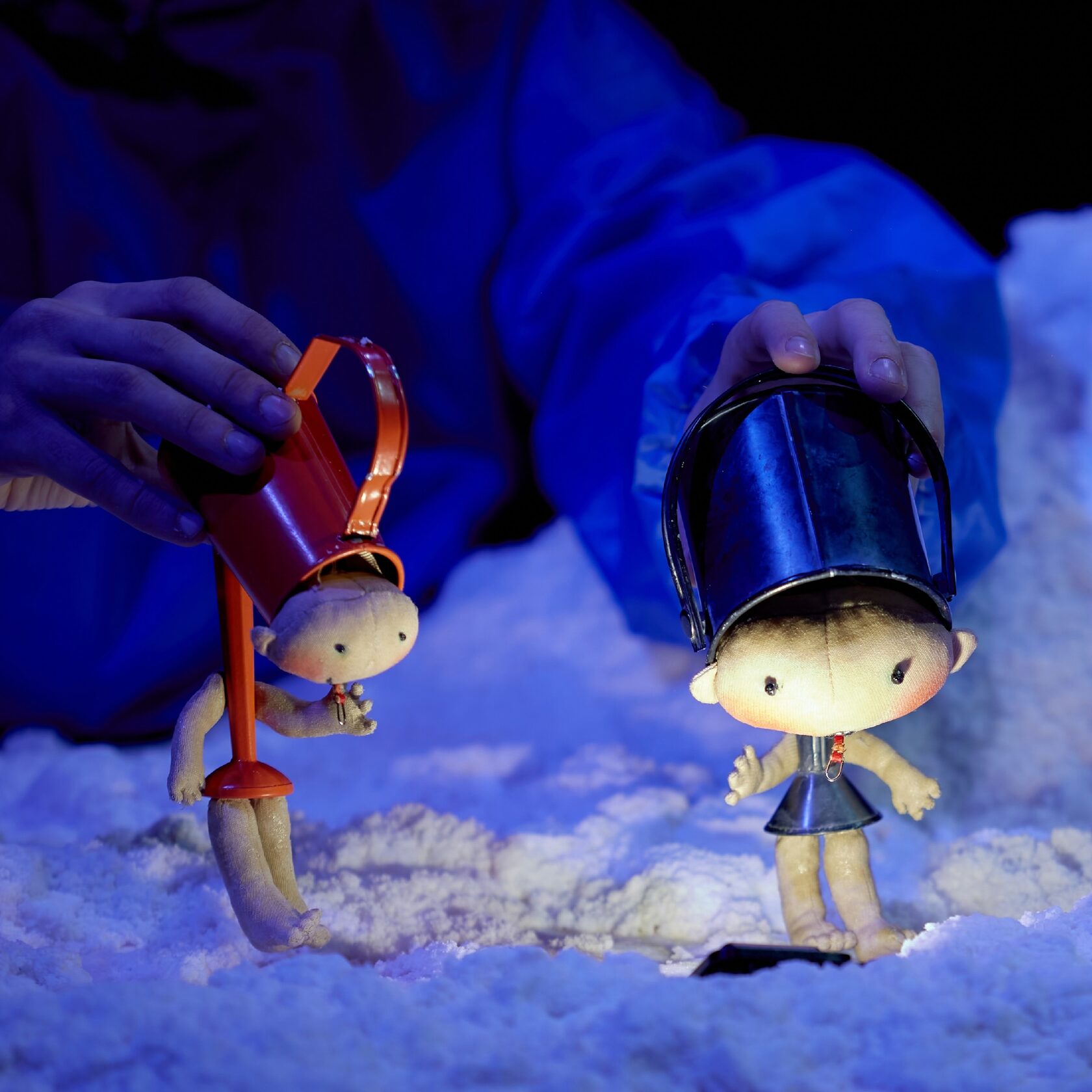 В театре Karlsson haus белорусский режиссёр Евгений Корняг, известный своими взрослыми фольклорными работами, неожиданно для всех поставил бейби-спектакль «Песочница». Действие разворачивается прямо у песочницы: актёры (Ася Галимзянова, Алиса Дроздова, Роман Еникеев, Юлия Иванова, Игорь Никулин, Мария Коркодинова, Ульяна Селенских, Михаил Абрамов) в ярких комбинезонах копаются в песке, находят части кукол и собирают из них странных многоруких-многоногих существ: голова на лейке, три ноги, две руки – и всё это живёт, двигается, меняется на глазах. Разыгрываемые истории хаотичны. Сперва возникает ощущение, будто спектакль повествует о зарождении и развитии жизни на планете: на это намекают существа, появлявшиеся из песка и ползающие или плавающие в воображаемом море. Но затем стихия игры уносит участников то на полярную станцию, то к ракете и т.д. Череда эпизодов не упорядочена логически, и это решение выглядит очень верным: ведь суть – в самом процессе игры. В финале из фантазий рождается гигантское существо с множеством ручек, ножек и голов. «Мы не знаем, что это такое», – честно признаются актёры. И это, пожалуй, главная мысль: мир не обязан быть упорядоченным, ведь воображение – бесконечно. Взрослые недоумевают, а дети смеются и хлопают, искренне радуются каждой новой модификации.