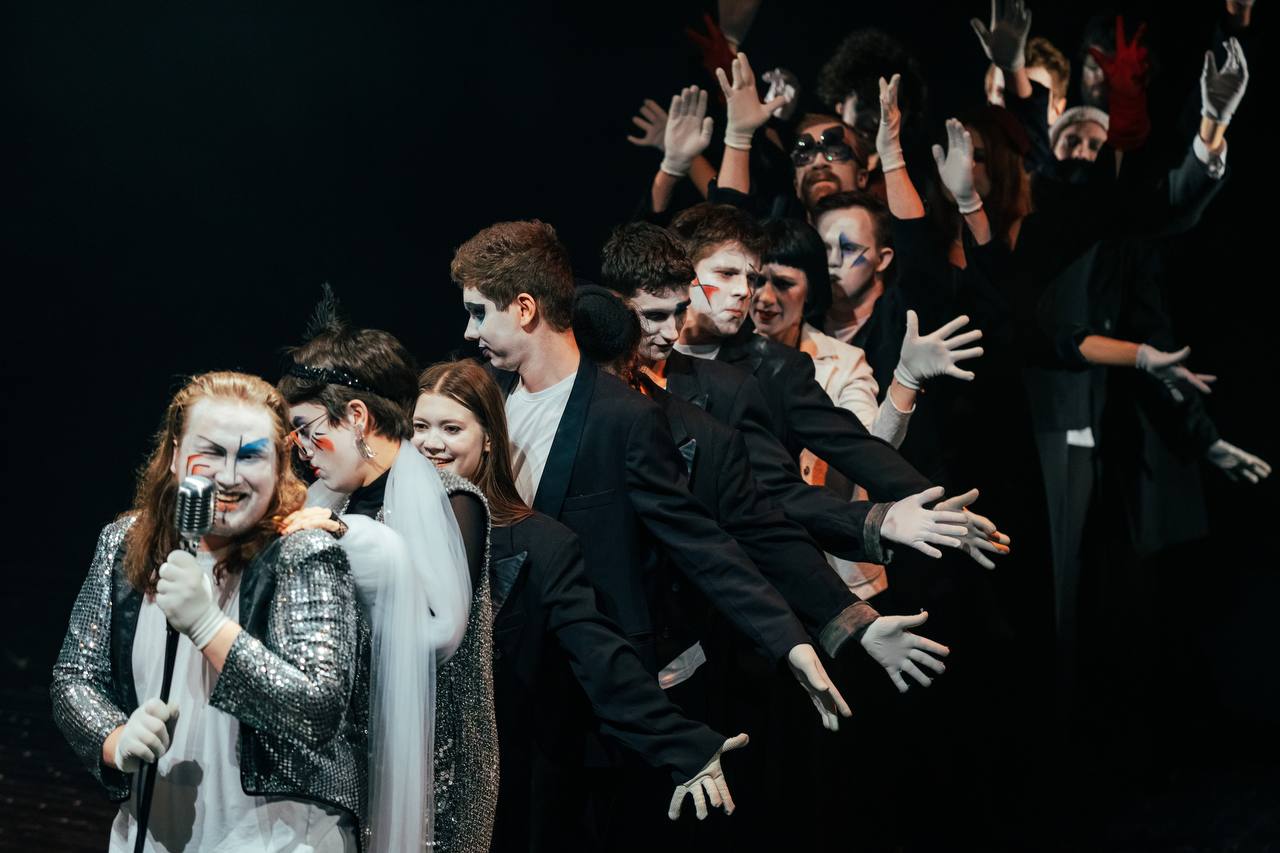 «Жизнь насекомых» московской «Инклюзион. Школы» – это спектакль-концерт. Речь конферансье, который открывает и закрывает концертную программу, несколько сбивчива, однако, это ничуть не мешает его уверенности в себе. Основой репертуара выступлений стали стихи и песни 1920-х и 30-х годов. Отправной точкой и сквозным сюжетом для путешествия в то время стала «Муха-цокотуха» Чуковского. Кроме отрывков из сказки Корнея Ивановича важное место в композиции занимает «Таракан» Николая Олейникова. Трагическая судьба жертвы естествоиспытателей становится поводом для рефлексии двух персонажей. Но литературная игра выплёскивается за рамки определённого периода: влюблённый Паук читает Мухе «Я помню чудное мгновенье…» и он же исполняет песню Петра Мамонова «Муха – источник заразы». Не все произведения напрямую связаны с темой насекомых, но все они так или иначе позволяют зрителю прикоснуться к частной жизни человека в переломный период истории – песни беспризорников, романс «Только раз бывают в жизни встречи»… Драматический конфликт в спектакле создаёт не противостояние Паука и Комара, а интермедии с участием Крупской (Софья Ширякина) и Сергея Васильевича Агапова, заведующего Дома-музея Чуковского в Переделкино (режиссёрские камео Сергея Быстрова). Надежда Константиновна в своё время выступала в печати с резкой критикой «Мухи-цокотухи». Очень милый, по-домашнему уютный Сергей Васильевич успокаивает её пыл как только может. Но концертная составляющая здесь всё-таки преобладает, ни одна сюжетная линия не длится достаточно долго, чтобы по-настоящему захватить, главным впечатлением остаётся общее ощущение бурного потока времени и культурных наслоений. В костюмах актёров тоже нет жёсткой привязки ко времени написания сказки Чуковского (1924-й). Подчёркнуто театральный грим, бледные лица многих персонажей, ярко нарумяненные щёки и серебристое платье красавицы Мухи или, например, красные перчатки исполнительницы романса, скорее, вызывают ассоциации с эстетикой Серебряного века. Так из стихов, песен, кратких отсылок к исследованиям филологов, обрывочных фраз о жизни насекомых и внешнего вида персонажей создаётся очень мягкое погружение в контекст эпохи. И хотя заканчивается спектакль, как и положено сказке, общим весёлым плясом на именинах у Мухи под современную музыку, хочется всё же отнести его в категорию подростковых, а не детских, поскольку базовое знание истории и литературы здесь очень пригодится для понимания и получения удовольствия от увиденного.