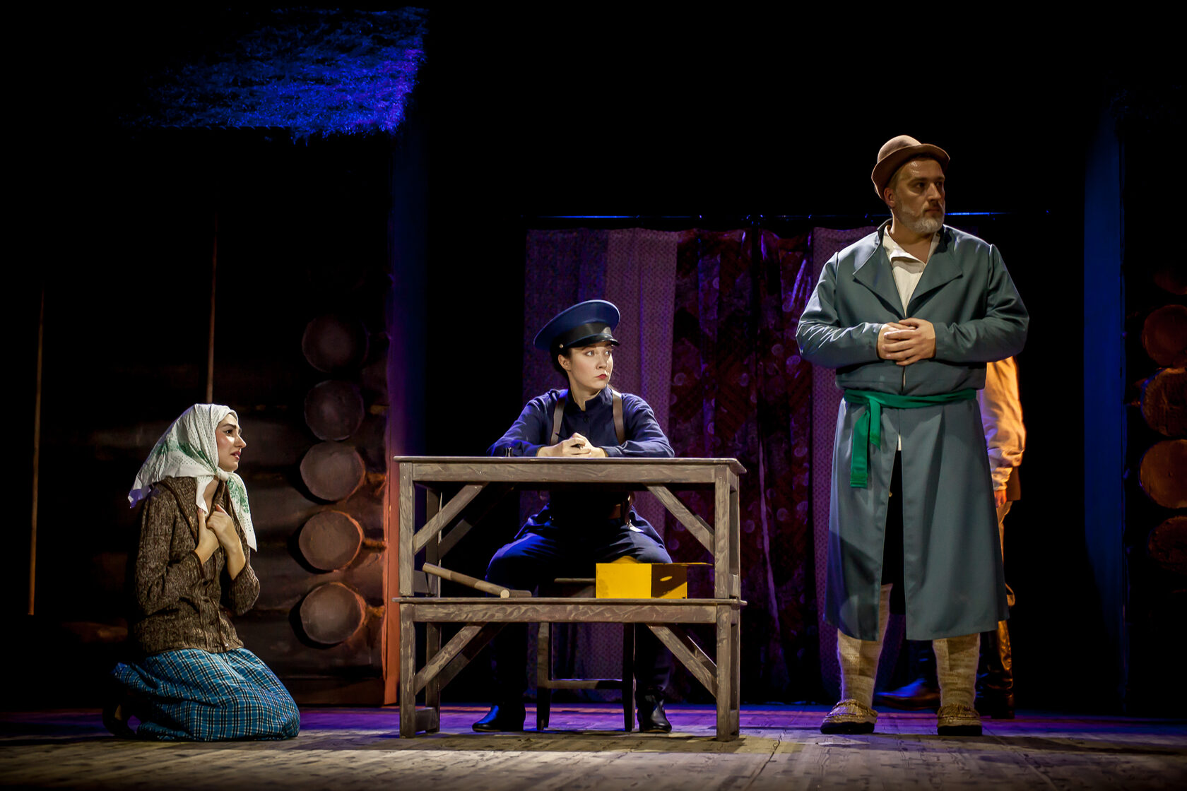Первое, о чём хочется говорить, вспоминая «Шутейные рассказы» в воронежском «Театре равных» – сыгранность актёрского ансамбля. Каждый актёр на своём месте и поддерживает ближайшего партнёра по сцене, создавая общую картину, построенную на контрастах. В дальней деревне, за которой только болото, все лица напоминают о ком-то, кого вы знаете. Я отношу ощущение встречи со старыми знакомыми не только к личному опыту (спектакли «Театра равных» я до этого не видел) и внешности исполнителей, иначе не стал бы упоминать об этом. Такова сама природа игры в спектакле – типажи чётко просматриваются, но не заслоняют личность. Все эти недотёпы, которые в нужных обстоятельствах вдруг проявляют хитрость и смекалку, быстро становятся до боли родными. Добродушный председатель колхоза назначает бесхребетного мужика Настасея председателем женского комитета. Заезжий фокусник соглашается со всем, что ему говорят, и молча блюдёт свою выгоду, принимая деньги от кулака за устранение неудобного человека, но журналист после номера с отрубанием головы, конечно же, останется невредим. Следователь Иван Пузиков, называющий себя «деревенским Шерлоком Холмсом» и «агентом угрозы», кажется, вот-вот должен попасть впросак со своим бахвальством, однако, он очень умело нагнетает напряжение. И предъявляет обвинения только после того, как собраны все необходимые доказательства, оставляя местных жителей в ошеломлении. Его помощница Алёхина (Мария Гаршина) преисполнена чувства собственного достоинства и твёрдой уверенности в словах начальника. Её серьёзность не производит впечатления комичной и напускной, как у шефа. На самом деле, редко встречаешь в театре волну такой внутренней цельности и силы, идущей от персонажа. Руководитель драмкружка Павел Вохов «самолично» пишет пьесу, с трудом находит желающих сыграть, но доводит дело до конца, показывая свою постановку перед приезжим членом комиссии по культуре. Постоянно что-нибудь идёт не так, суфлёр – самый активный участник представления, но спектакль всё же состоялся. Пассионарность драматурга оказалась способна свернуть любое препятствие на пути в искусство. Даже получить от суфлёра кулаком в челюсть на глазах у ещё не разошедшейся публики не так уж и обидно – здесь все свои.
