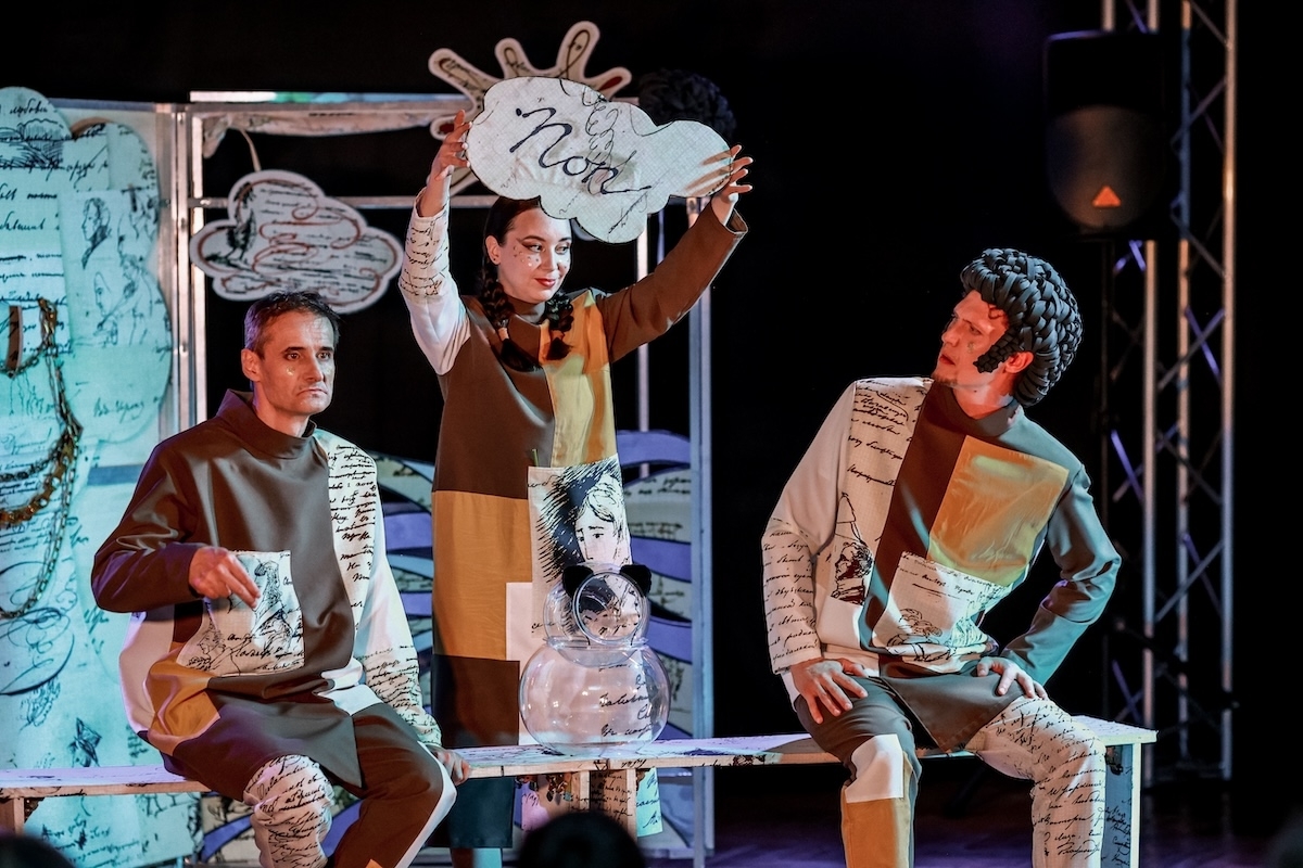 В прошлом году в инклюзивной программе БДФ тоже был спектакль Марии Кузнецовой – «Про… Чехова» в волгоградском театре «Тёплые артисты». Эта работа совсем в другом жанре, спектакль-пантомима. По сюжету, задремавший над томиком Чехова школьник попадает во сне в футуристический музей. Экспозиция позволяет стать наблюдателем или непосредственным участником коротеньких эскизов по произведениям Чехова. В маленьком путешествии героя по ожившим иллюстрациям нашлось место и лирическому и комическому. В экспозицию попали пьесы «Вишнёвый сад» и «Чайка», несколько рассказов и даже цитата про ружьё, которое обязательно должно выстрелить, если оказалось в пьесе. Получилось очень легкое прикосновение к автору. Почти весь текст в спектакле произносит голос гида, звучащий над сценой. Особенно выразительна мимика главного героя (Антон Шипицын) – категорическое неприятие Чехова постепенно сменяется удивлением и интересом.